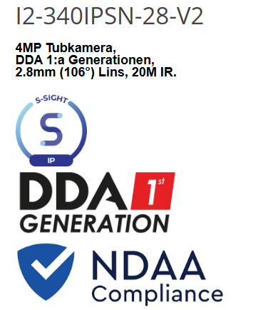| 4MP Tubkamera,DDA 1:a Generationen, 2.8mm (110°) Lins, 20M IR. |